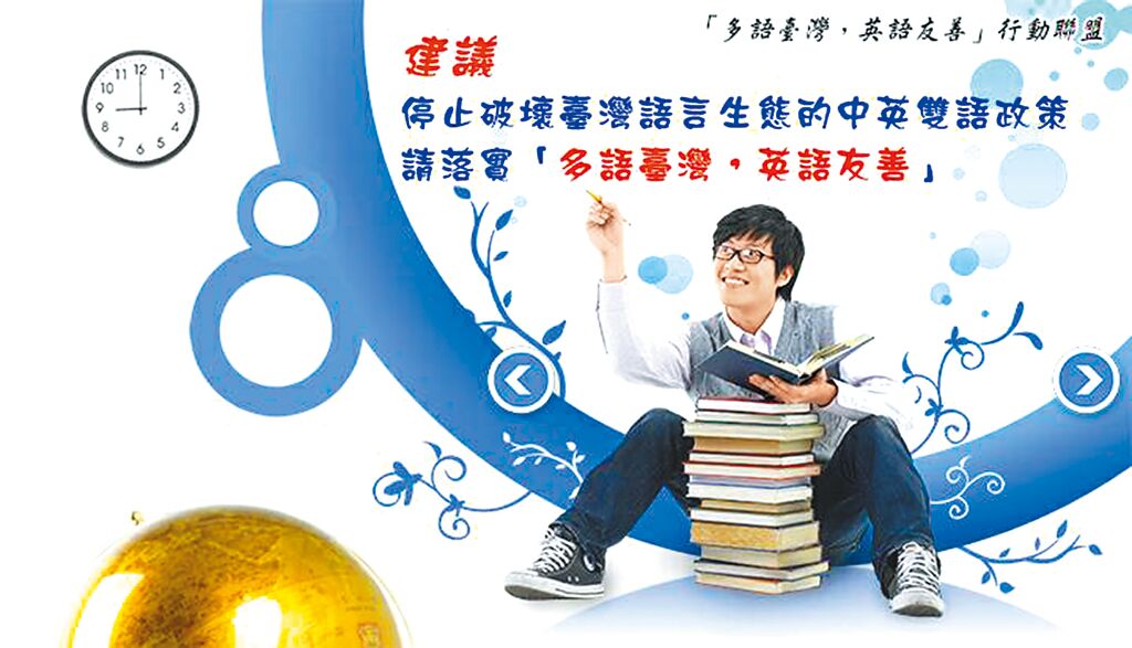 由「多語台灣,英語友善」行動聯盟拋出的提案,訴求:「雙語政策」有違國家語言發展