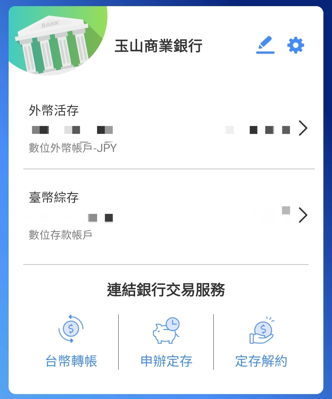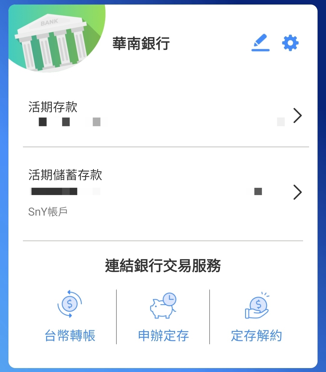 目前已經上線的有四家銀行,可以操作轉帳、開立定存以及定存解約三項功能: