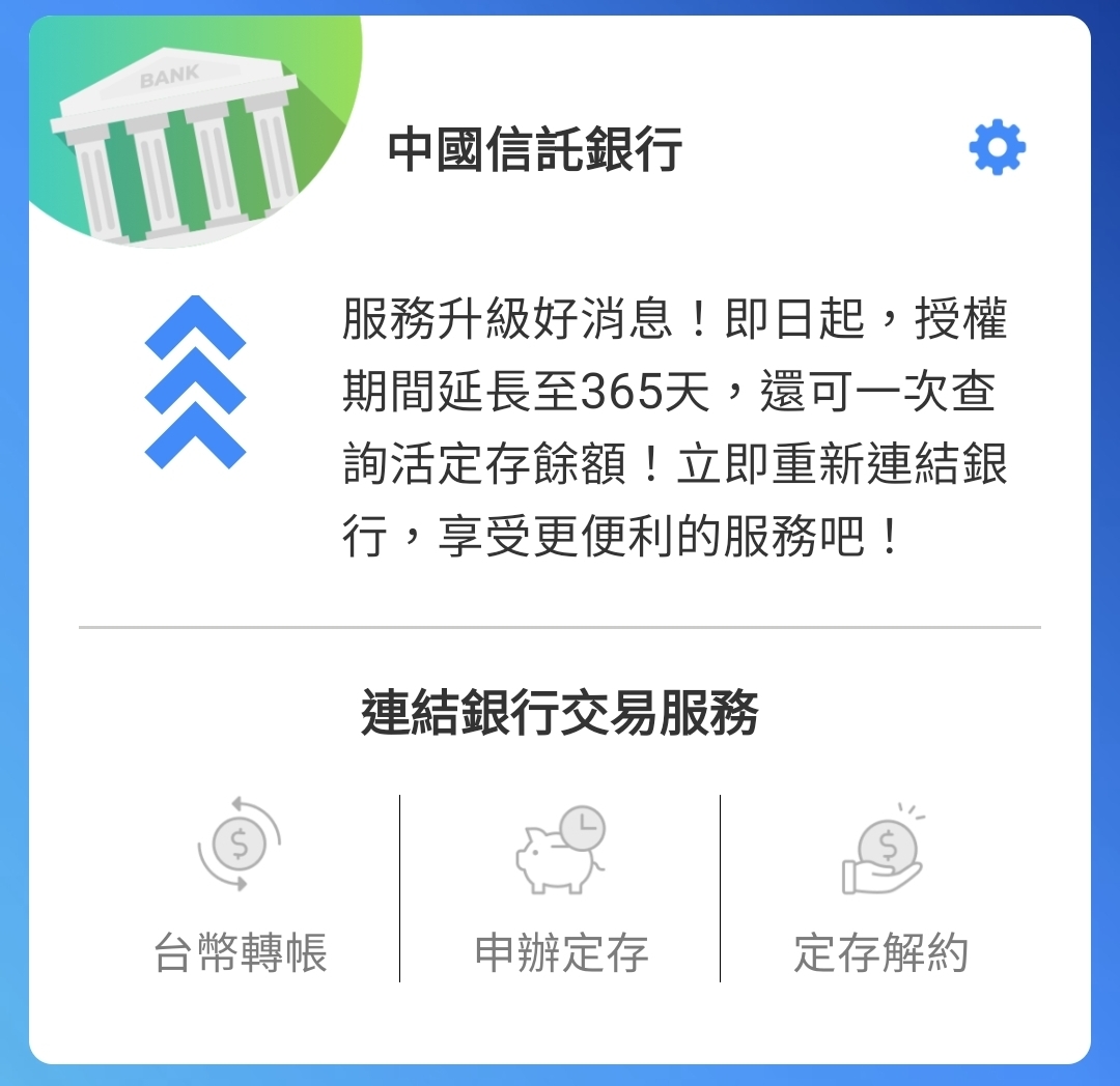 中信重新連結後好像有小Bug,建議正常登出APP後重新登入再使用