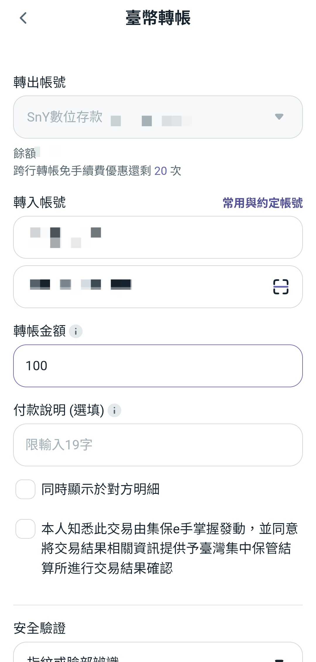 一樣要登入(按指紋)/輸入帳號金額/收驗證碼(非約轉)