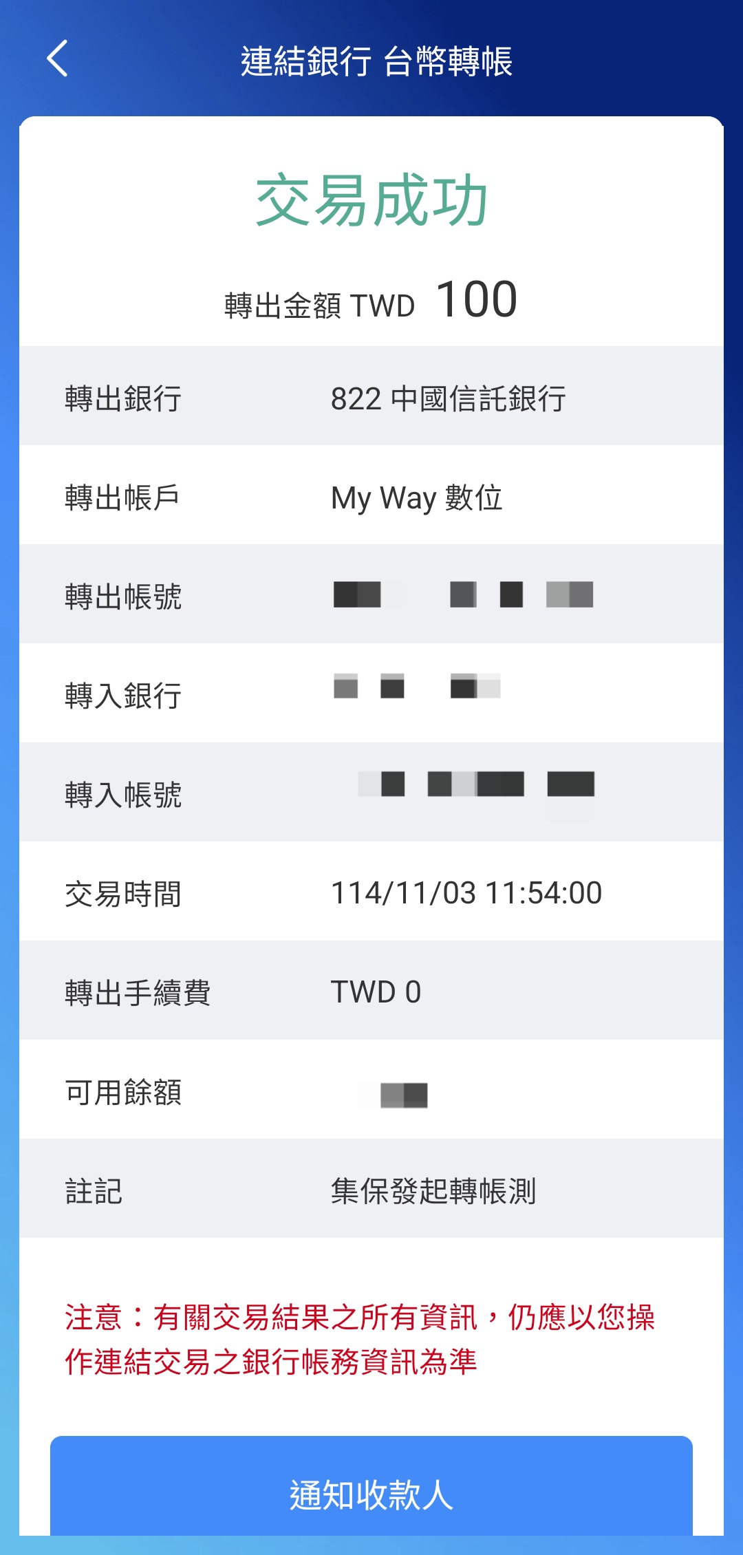(只有玉山的網銀紀錄會標明是集保發起的轉帳,但也只有玉山在轉帳頁面沒提到集保)