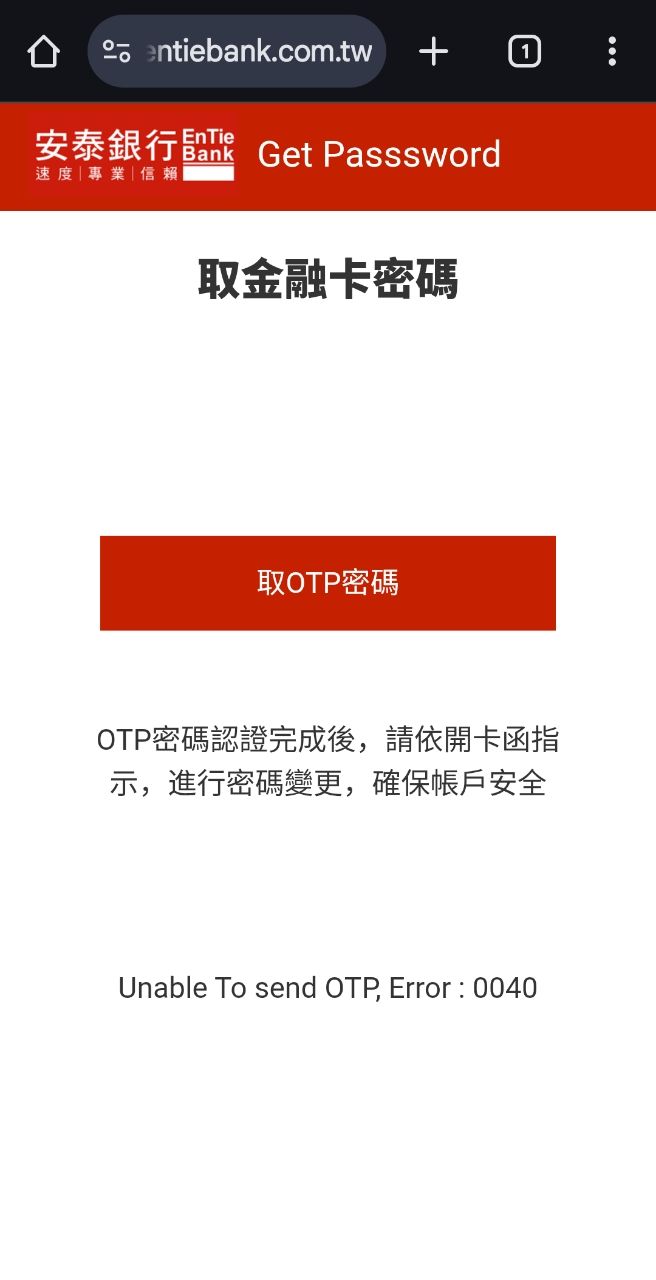 怎麼按都是 (Unable To send OTP, Error : 0040) 這個ERROR ,請問有大大遇過嗎?已