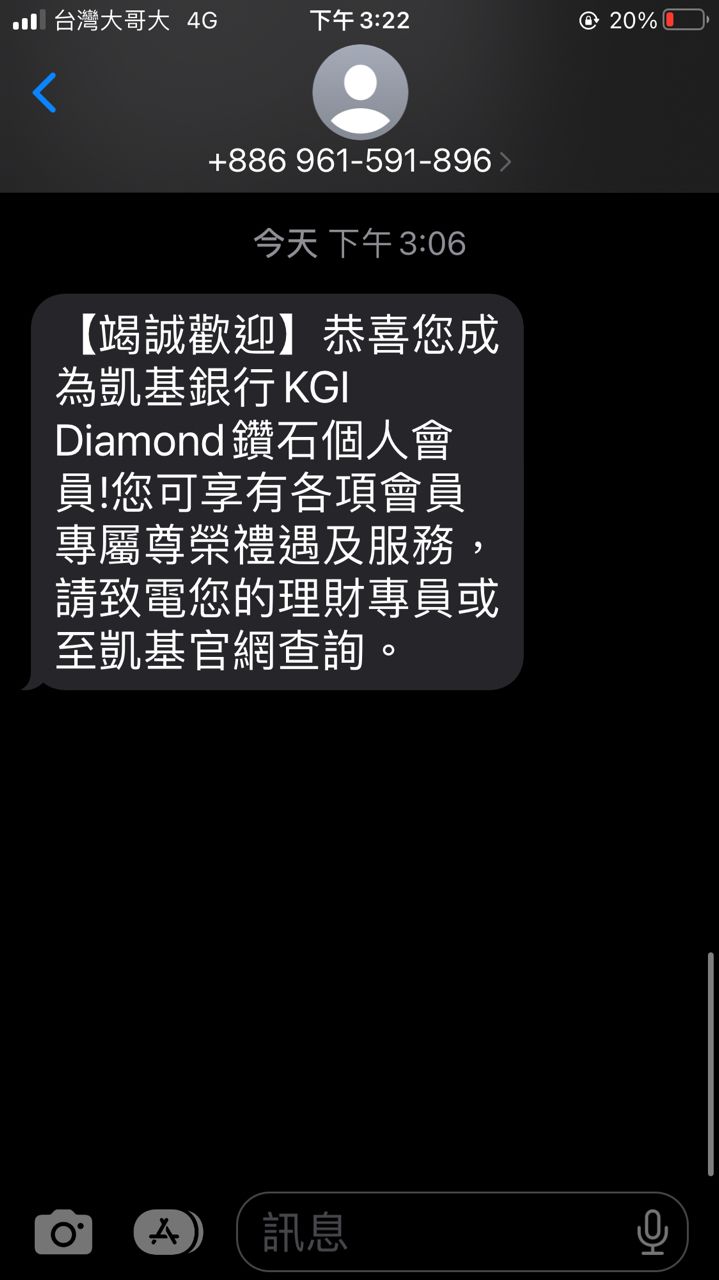 剛收到凱基銀行簡訊