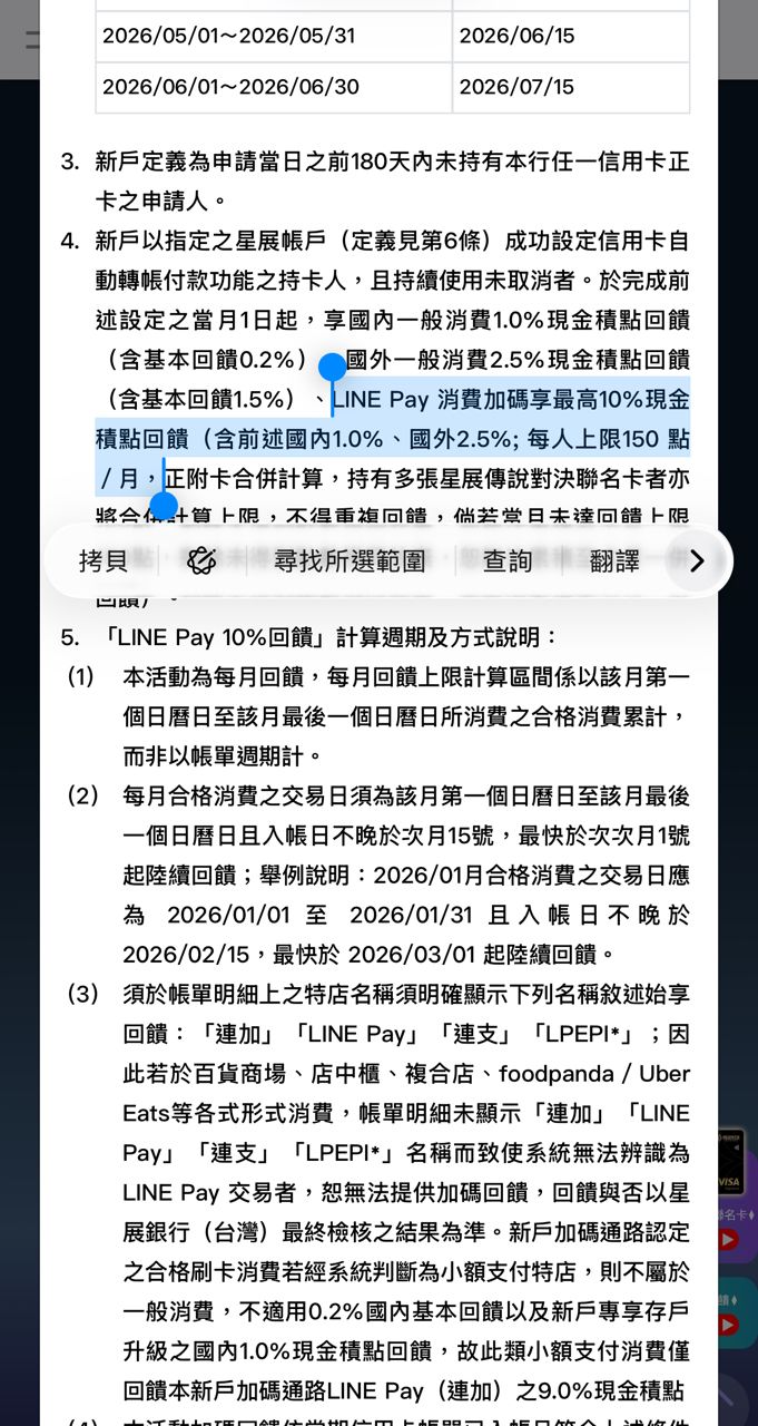 小弟最近辦了星展的卡,發現回饋進來的超慢。而且傳說對決卡回饋上限剩下一百多,到
