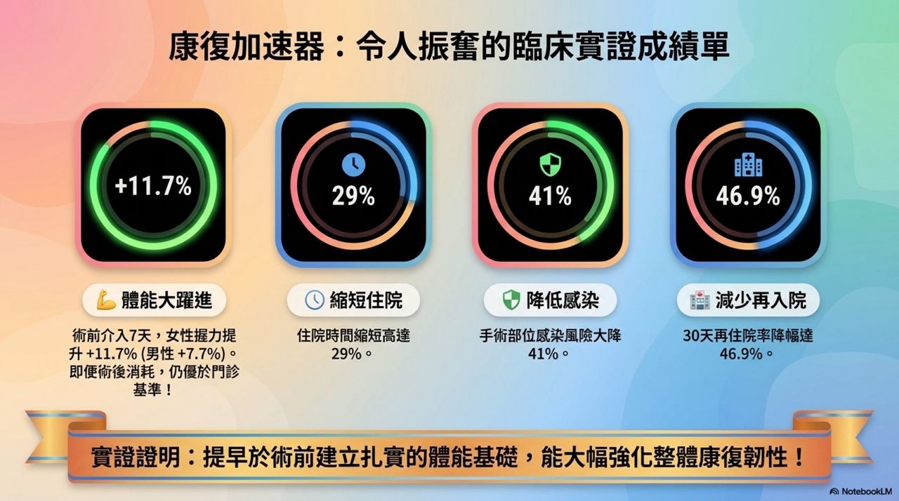 最讓我印象深刻的是 「肌肉緩衝 (Muscle Buffer)」 的概念:在術前 7 天介入後,女