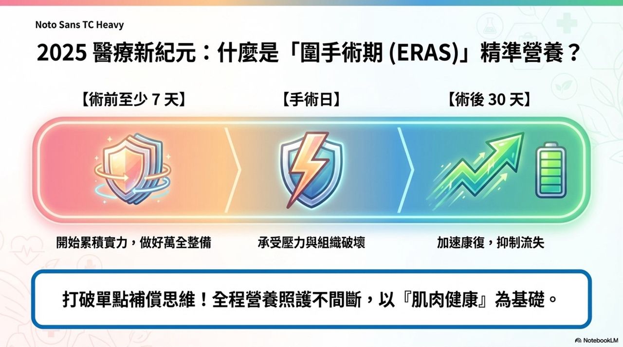 目前的醫學指引已經從單純的「術後補充」演進為「全程備戰」。這套策略被定義為 「