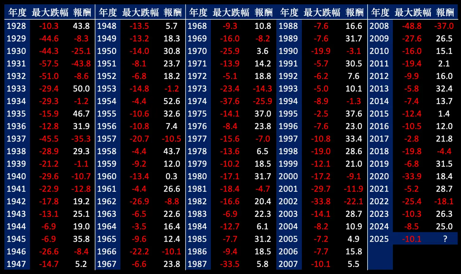 不過既然各跌幅平均發生的頻率都是一年起跳