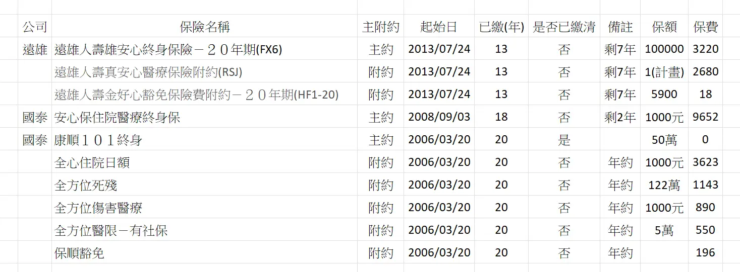 另外是不是應該要補上其他的項目例如癌症險,相對新的年約實支實付等等