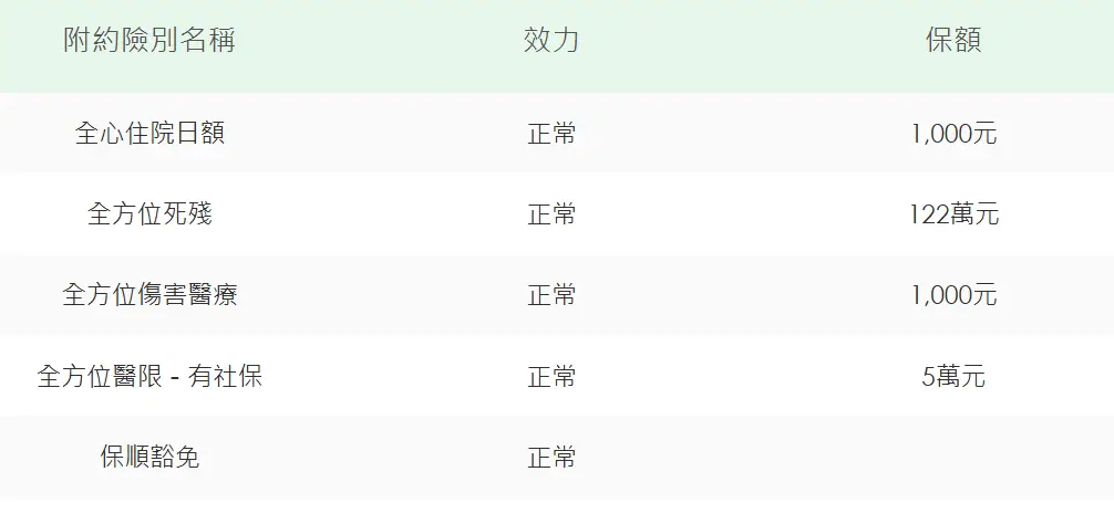 國泰 全方位醫限-有社保 附約 2006/03/20 20 否 年約