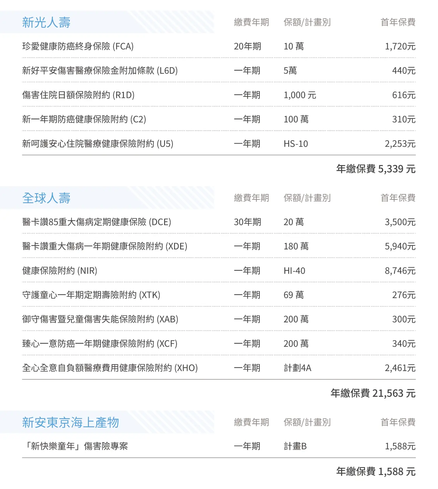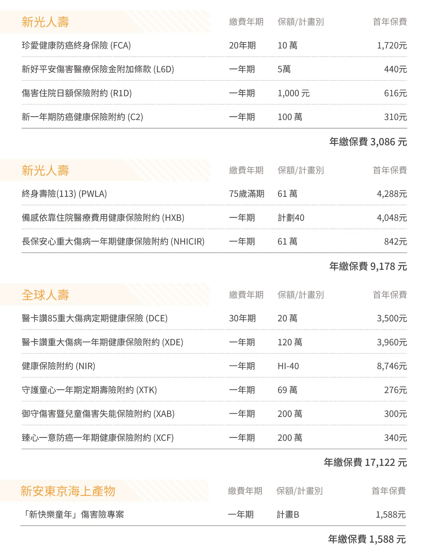 [險種] 0歲男 新生兒保單規劃