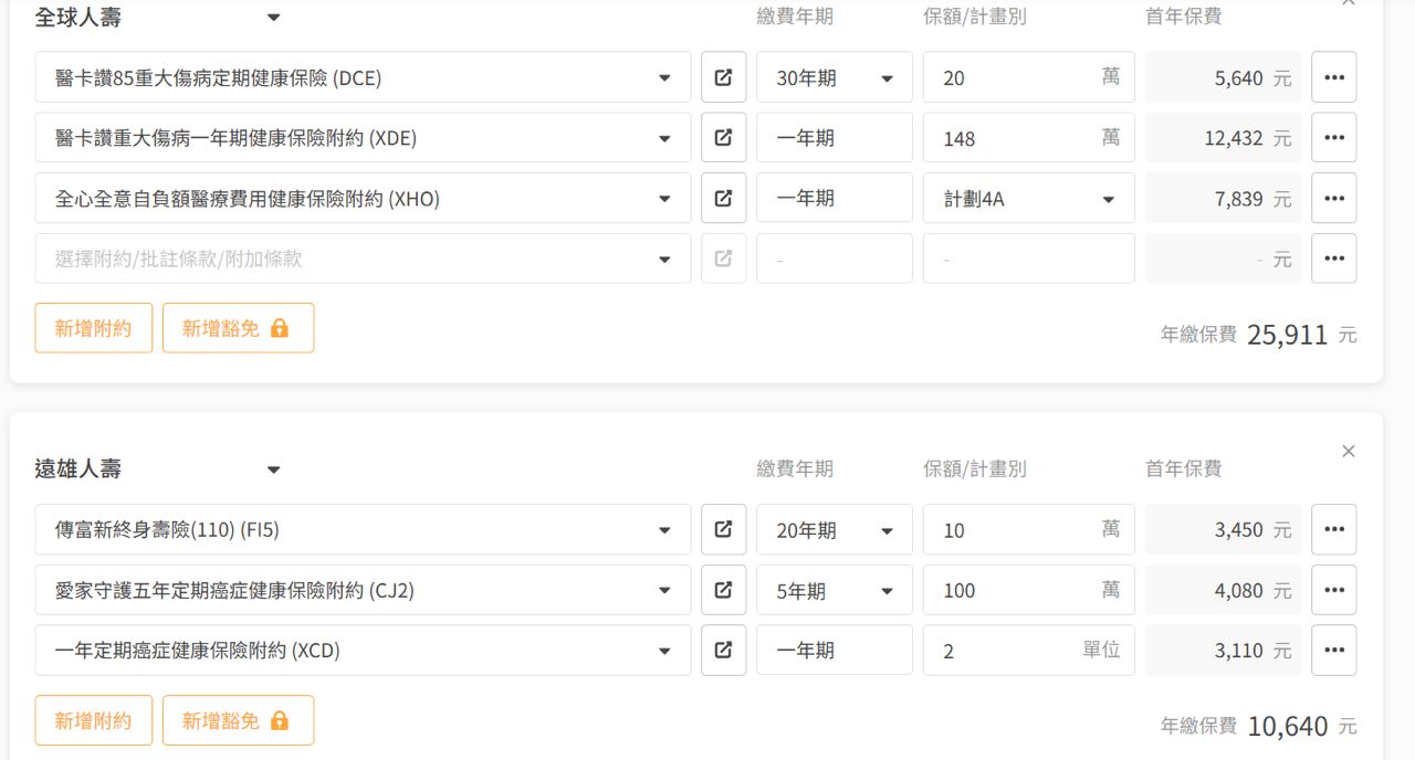 參考罐頭保單 新光+全球好像很不錯