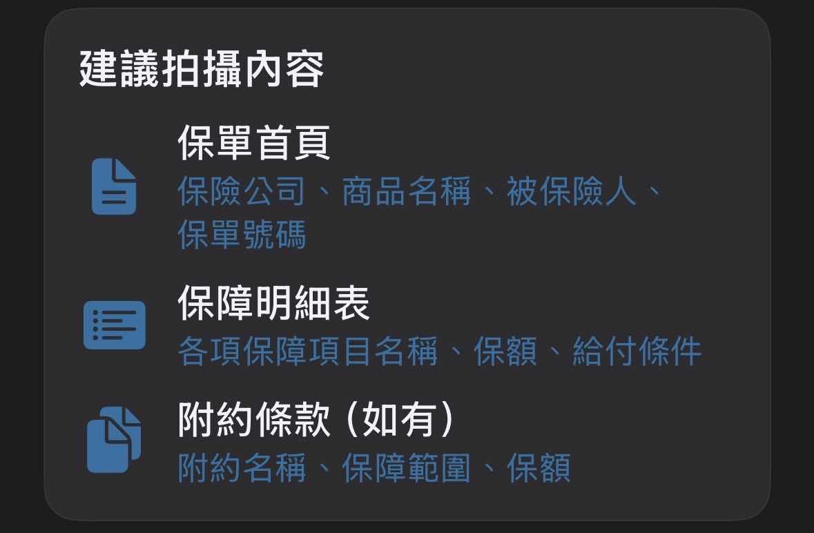 新客戶的保單拍一拍就能快速掌握保障全貌,