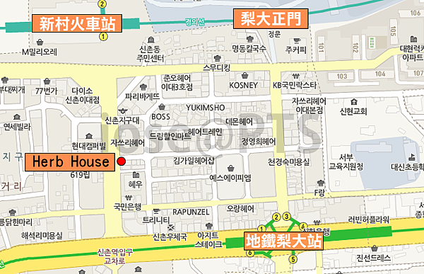 Herb House位在地鐵二號線【梨大站】週邊,走路約5分鐘,