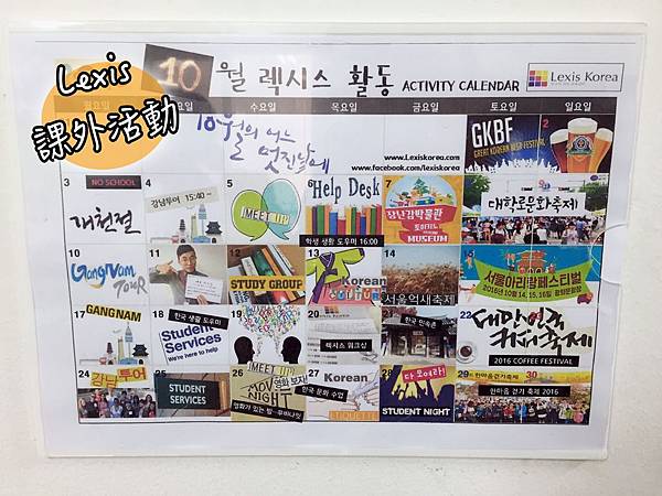 ps. Lexis 兩層樓,一層樓是給外國人學韓語;另一層樓是韓國人學英語,所以有很多交流活動。