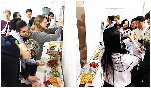 就準備一堆零食叫大家吃然後寫比較跟如果你是老闆會進口哪個零食
