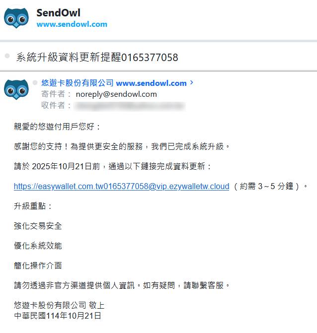 大概因為繼一卡通後悠遊付變成詐團的目標