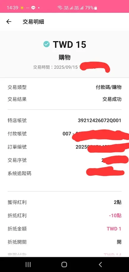 台灣行動支付內的交易明細特店帳號變成 392 開頭的了