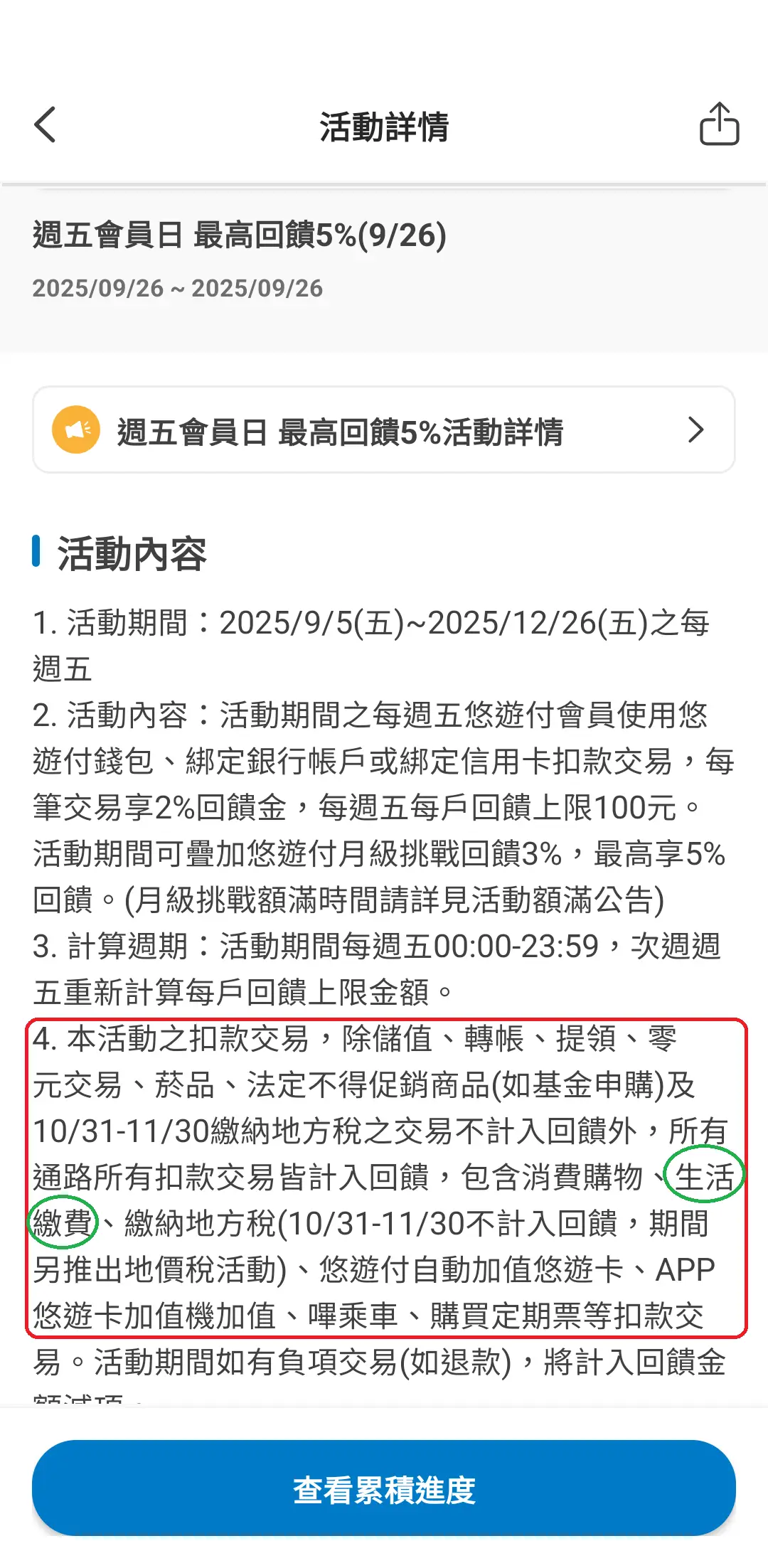 活動一之回饋金額將於次月25日前發送至符合本活動回饋資格者之悠遊付