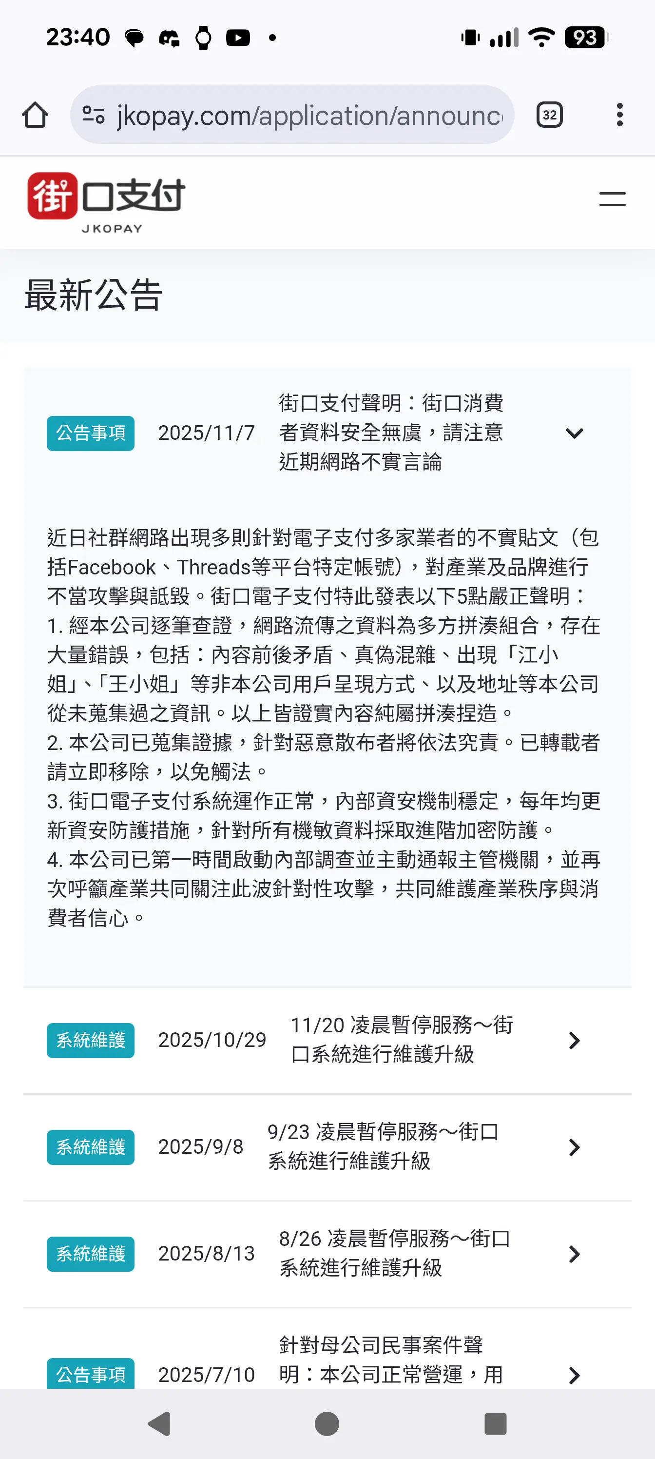 [情報] 街口支付聲明:街口消費者資料安全無虞