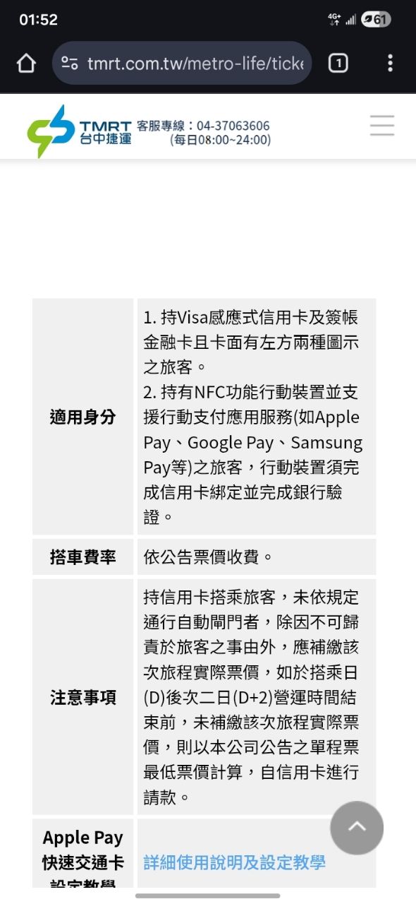 北捷補充,Apple Pay綁定信用卡的「快速模式ECP」(黑屏過閘)乘車功能,目前由收單