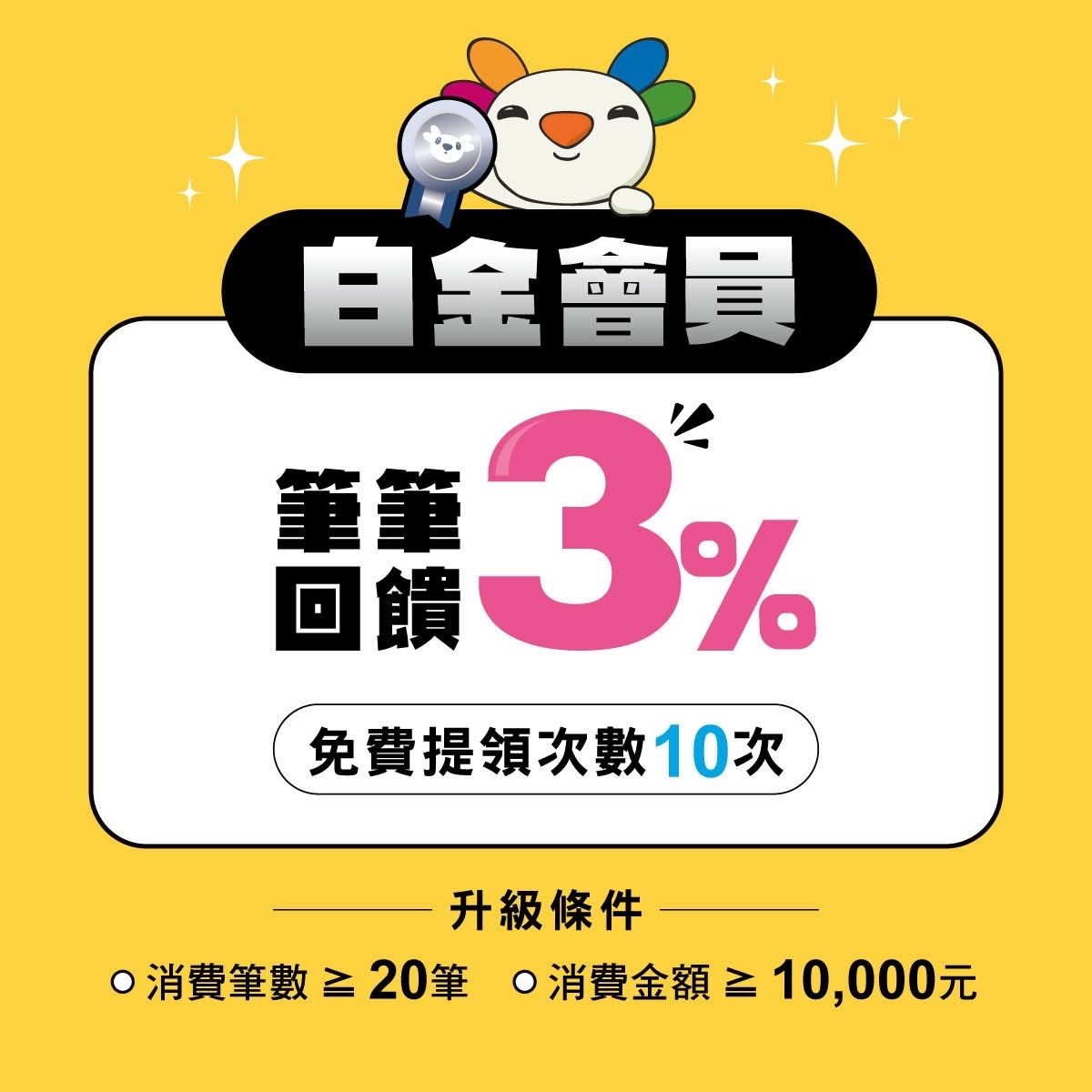 最高3%悠遊付回饋金,並享最高免費提領次數10次。