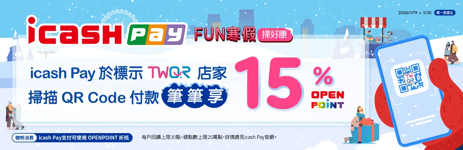 FUN寒假掃好康 平日TWQR用icash Pay筆筆回饋15%
