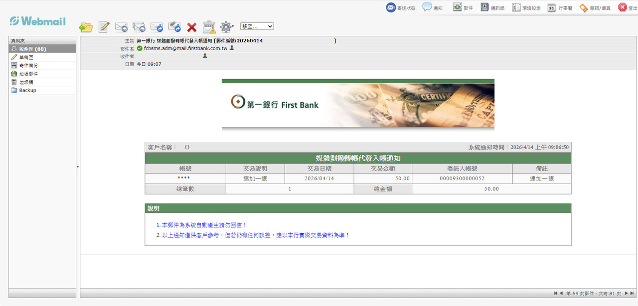 : 一銀網銀帳戶交易明細顯示這筆82元: