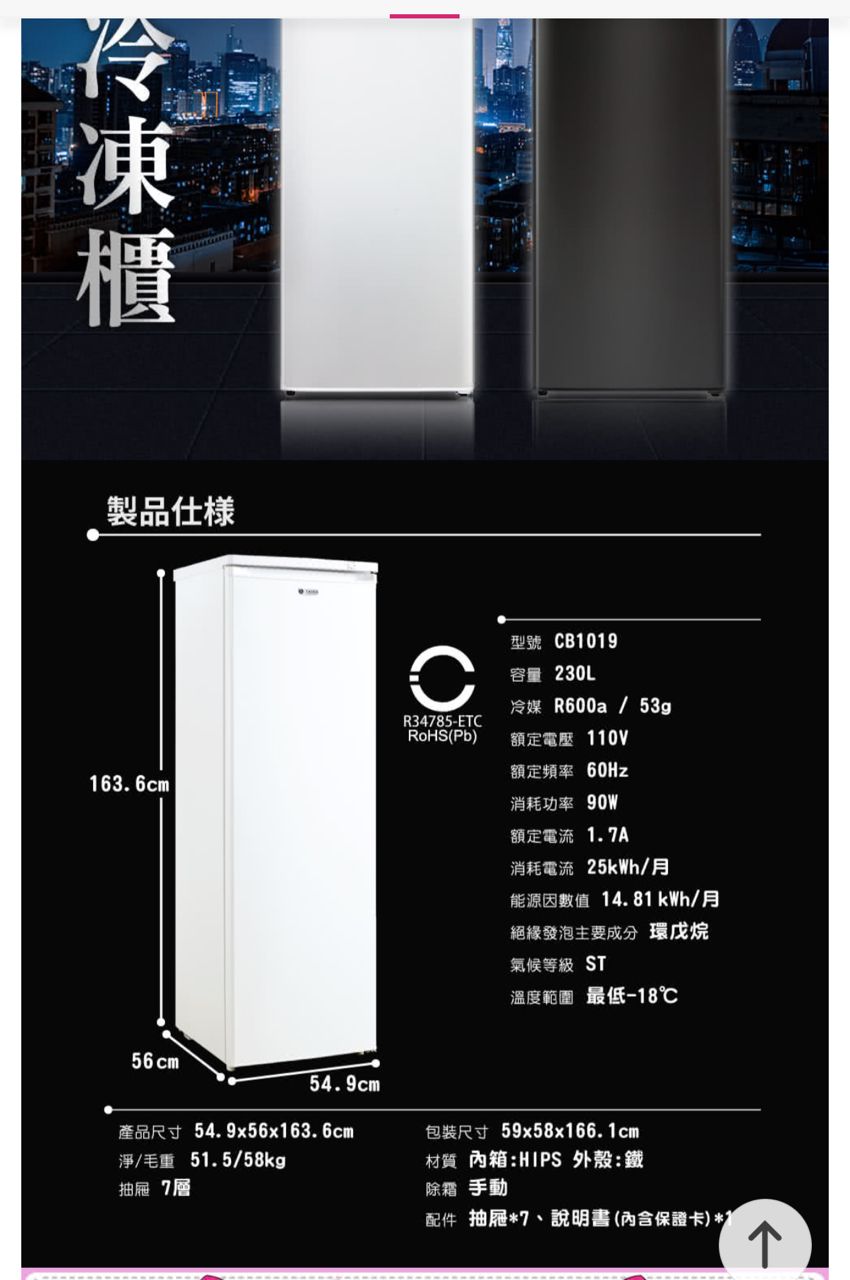 冷凍櫃一台、163*56*55