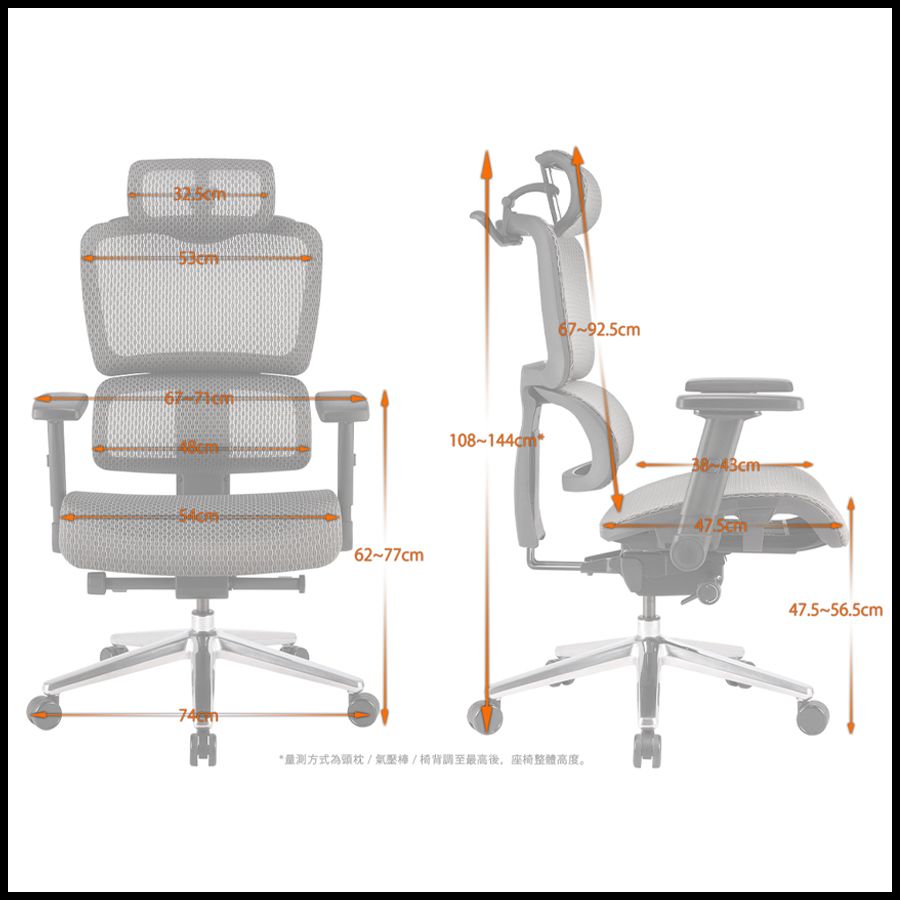 一張電腦工學椅,已拆成椅背+椅墊跟椅腳了