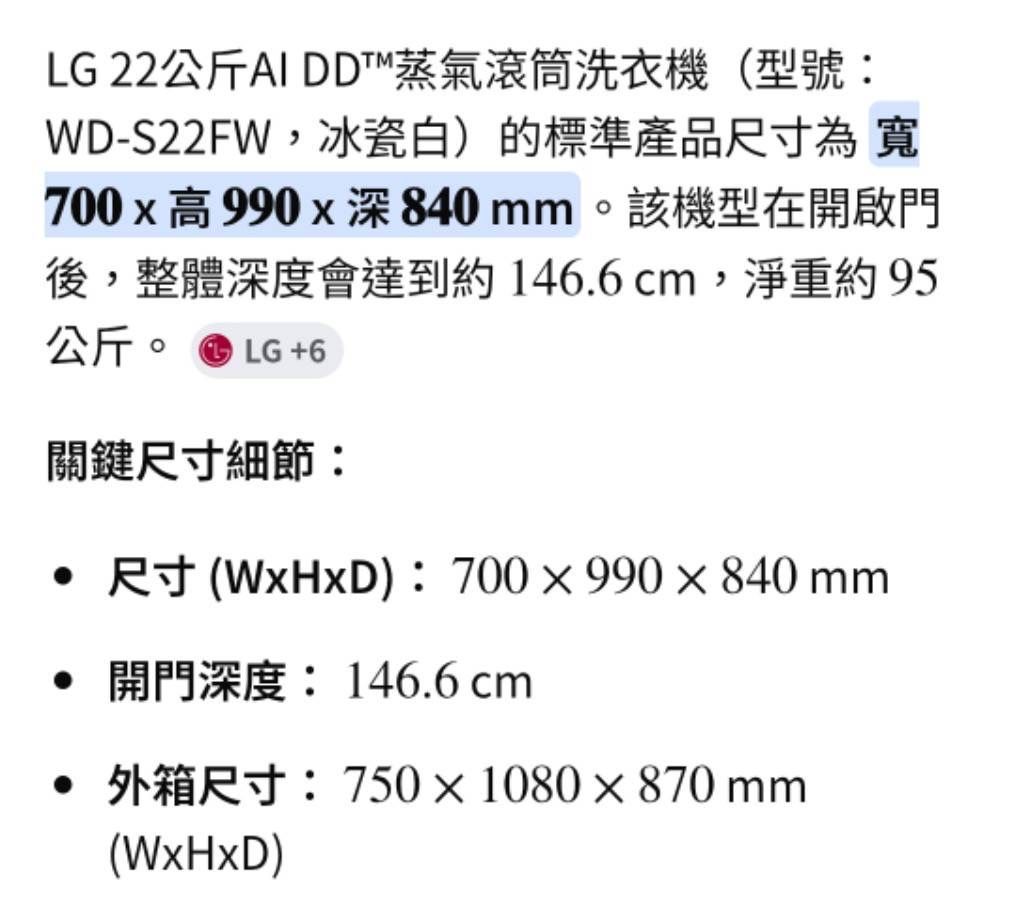 LG 22kg滾筒洗衣機+20kg 烘衣機