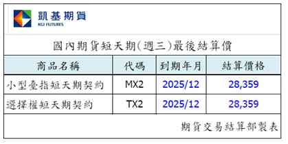 2025/12/10 國內期貨短天期(週三)最後結算價--28359