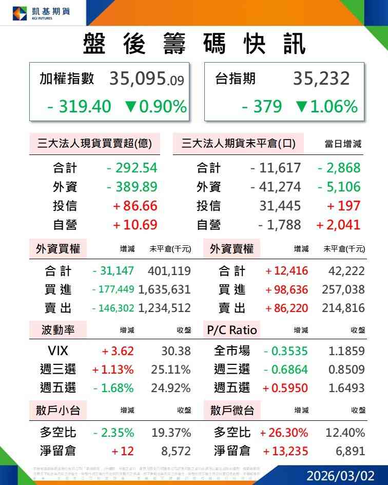 2026/03/02 盤後籌碼快訊