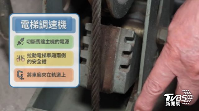 電梯調速機遇到晃動會啟動安全鉗。(圖/TVBS)