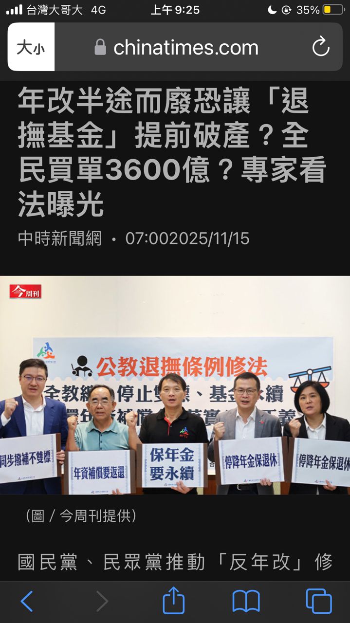 [新聞] 年改半途而廢恐讓「退撫基金」提前破產?全民買單3600億?專家看法曝光