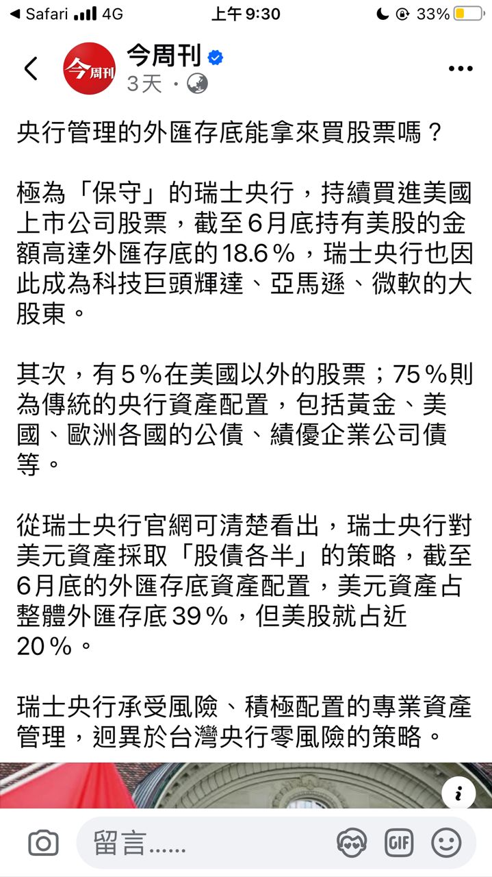 台灣的外匯存底應該學瑞士