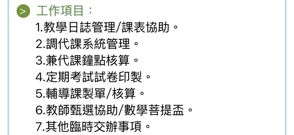 (目前在國中上述事務是教學組長做的,還是高中都是幹事在做?)