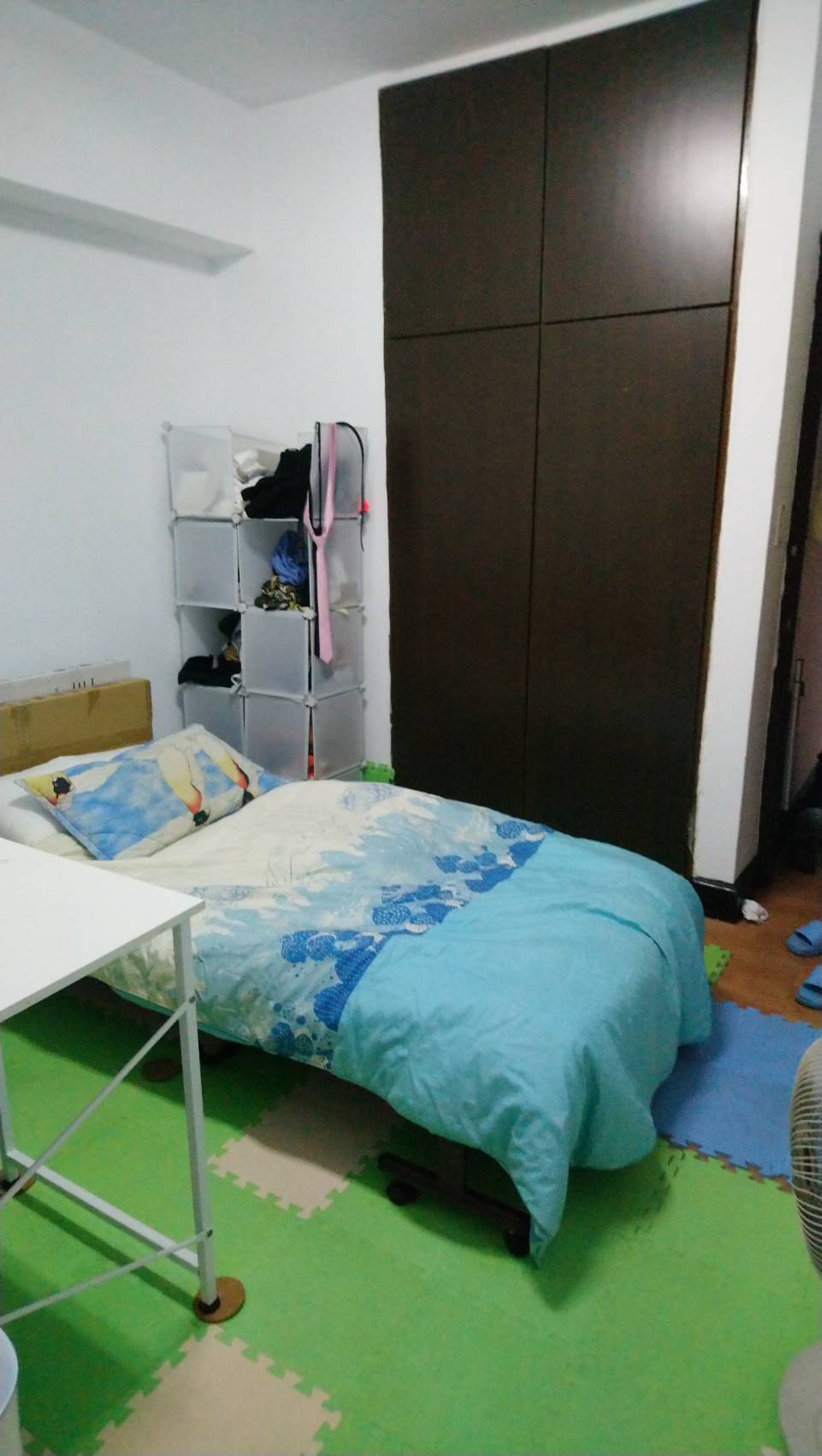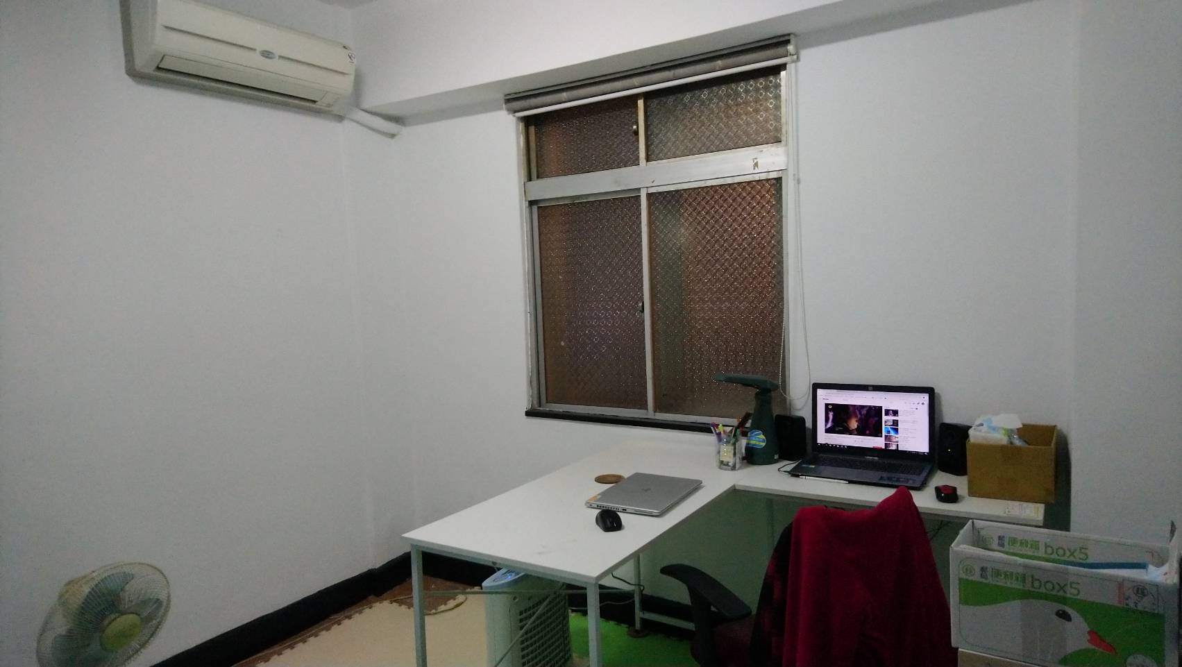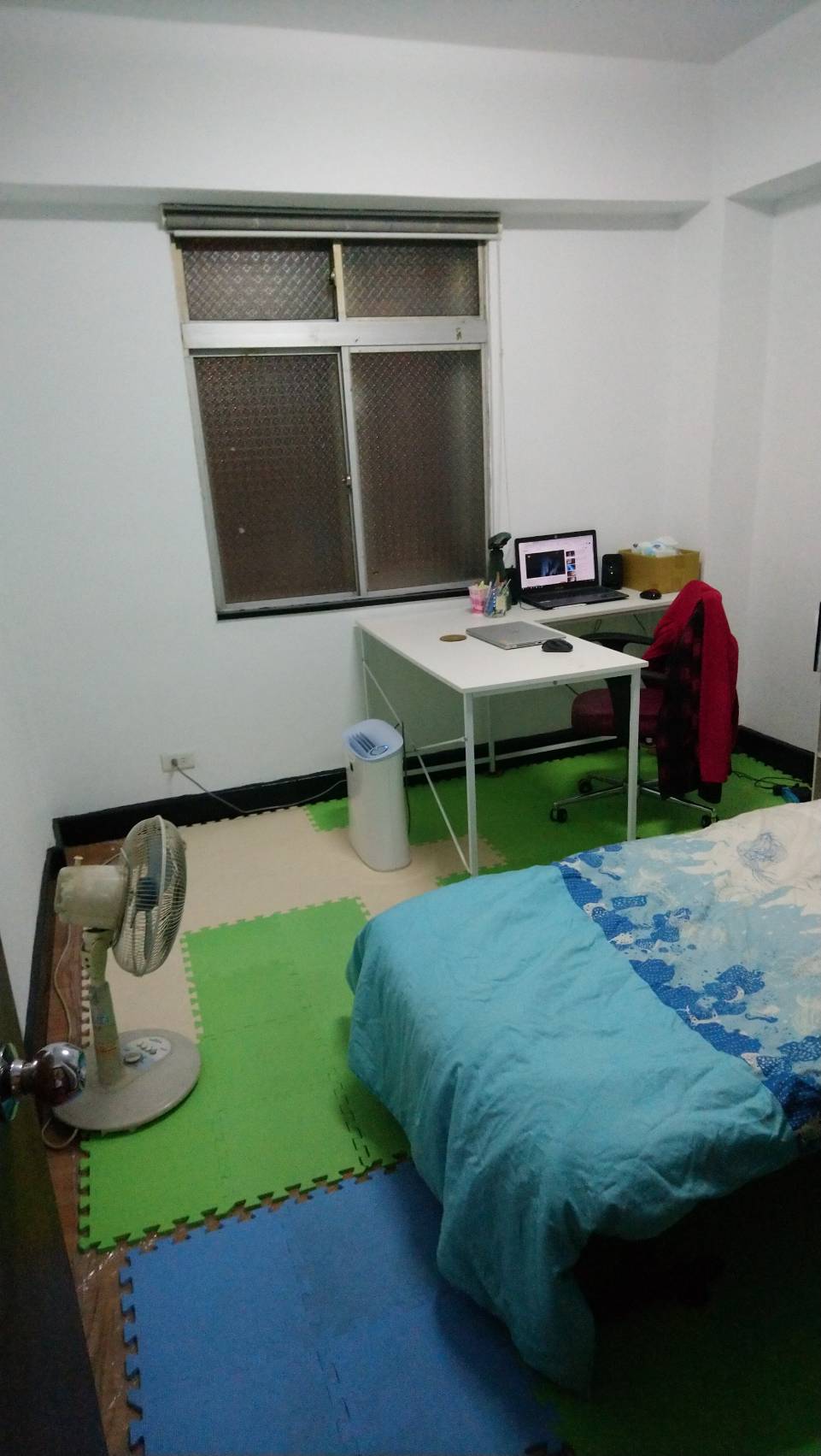 此雅房與另一雅房(女生)共用衛浴,房間附有桌子椅子及衣櫃。