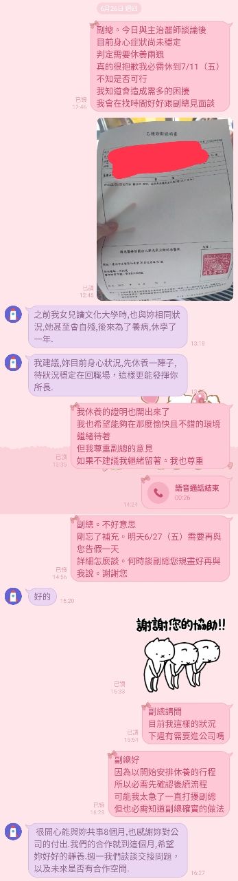 我沒有做不好。沒有亂請假 也沒透露在吃藥