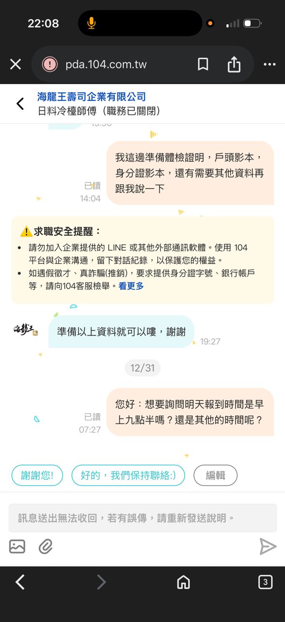 體檢報告,我為保確定12/31還打電話詢問公司隔天報到的時間,結果得到老闆說我都沒