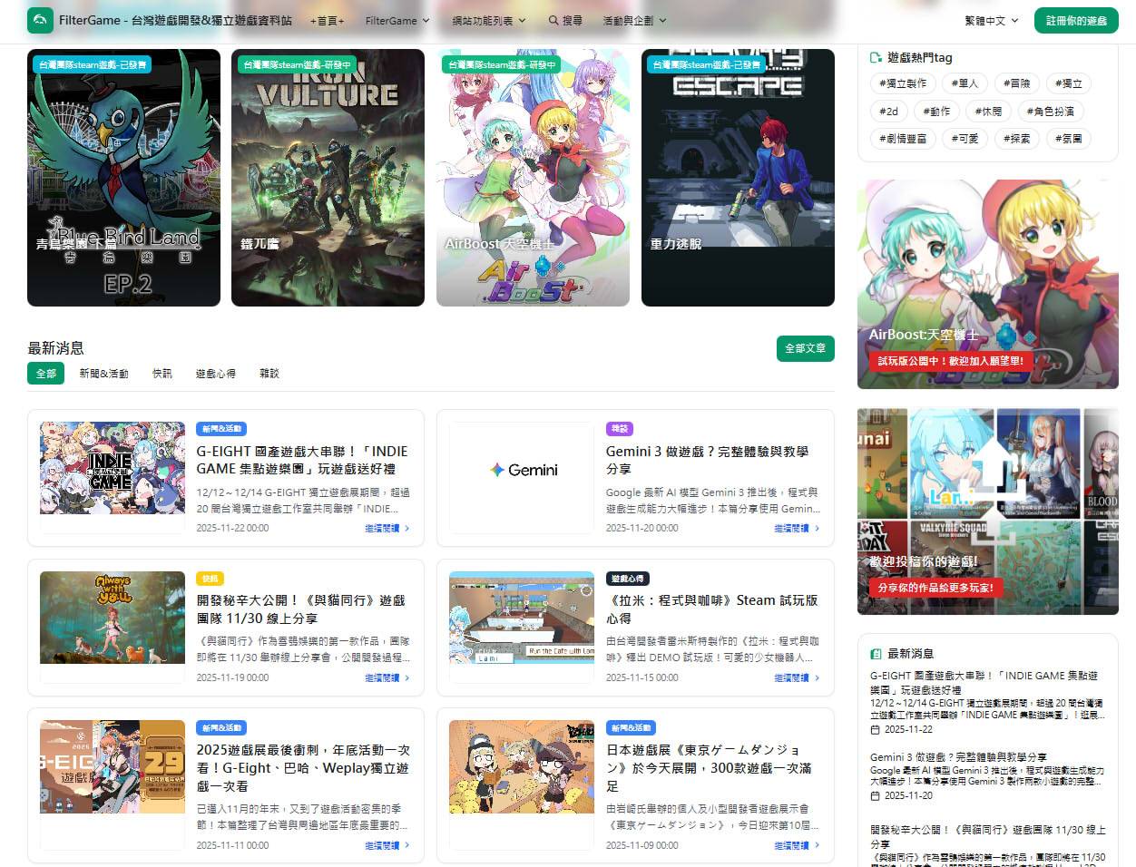 做了一個 台灣國產遊戲 或者說是獨立遊戲的資訊站
