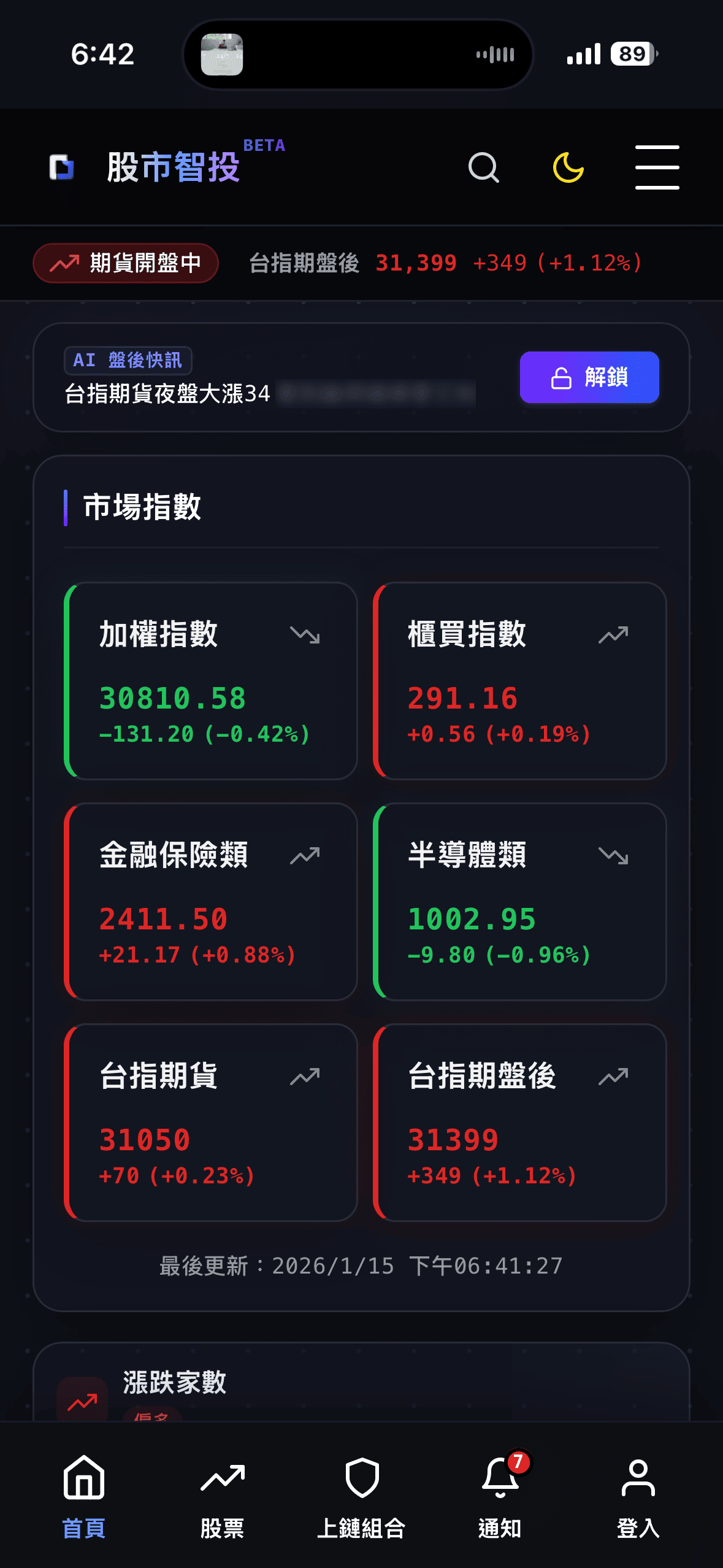 AI 摘要:整合 LLM 對股市動向進行語意化總結,快速掌握市場情緒(驗證中)。