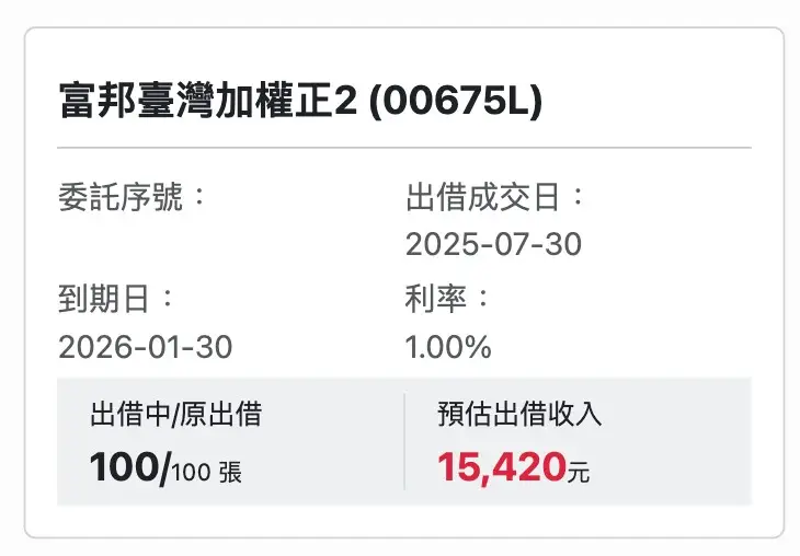 目前有出借中的100張富邦正2