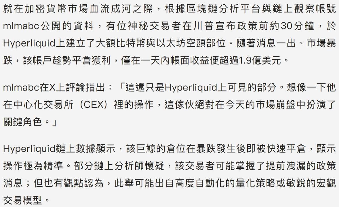 此次幣市大跌,源於美國總統川普宣布,將對中國加徵100%關稅,引發市場避險情緒升溫