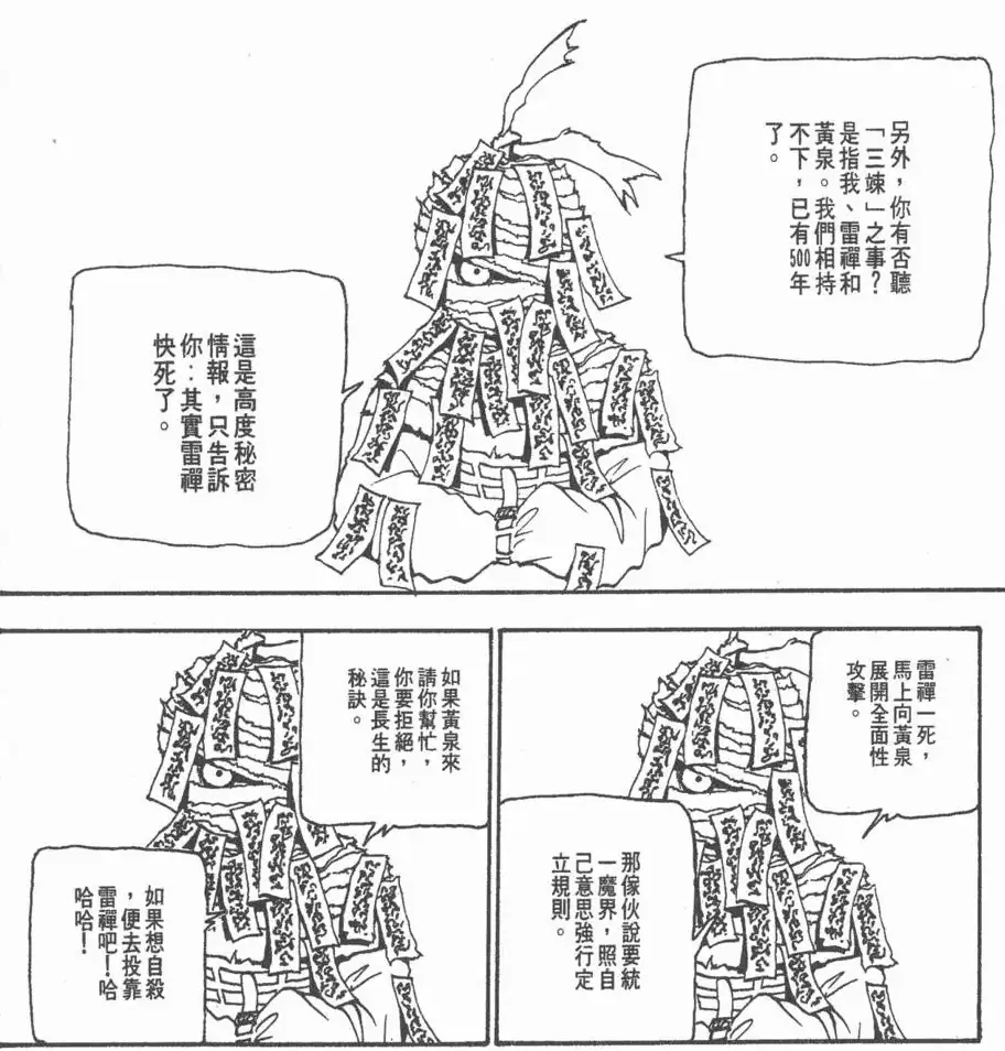 是夜,鬼怪又來,見樑上所繫之蛋後,哈哈大笑而離去。隔日村民遍