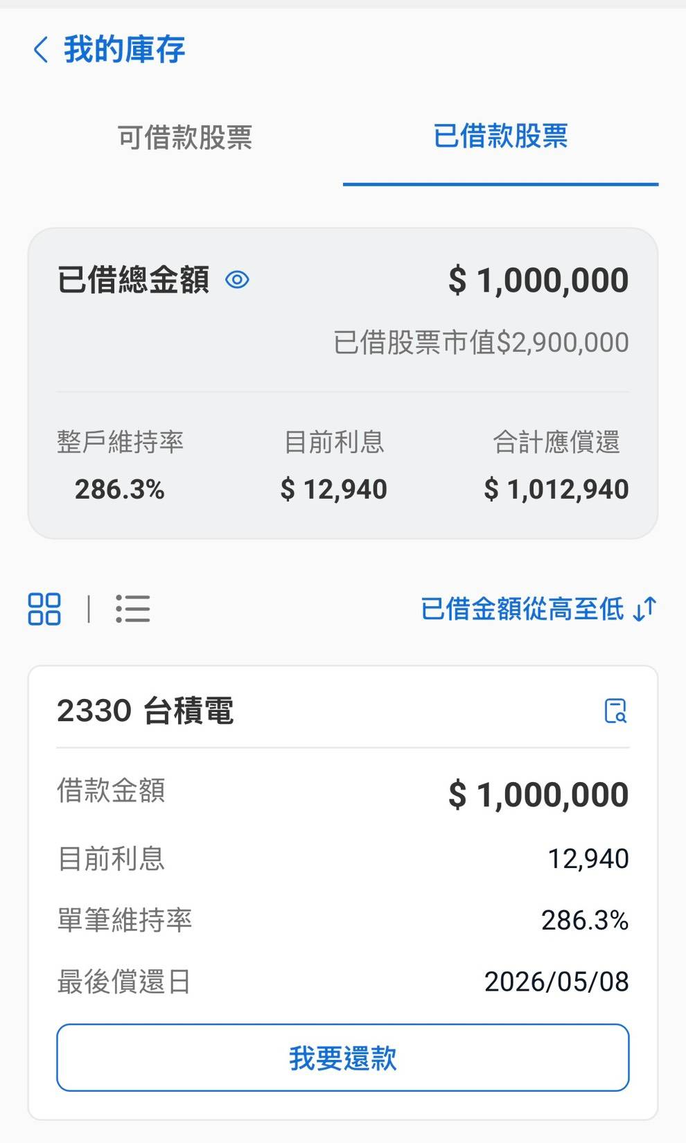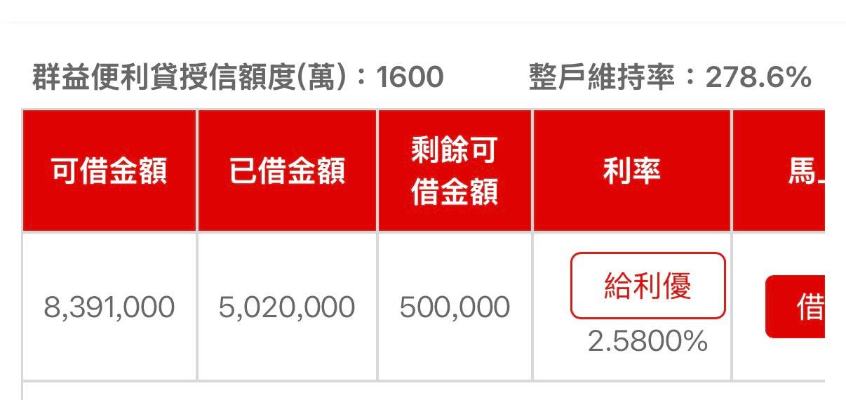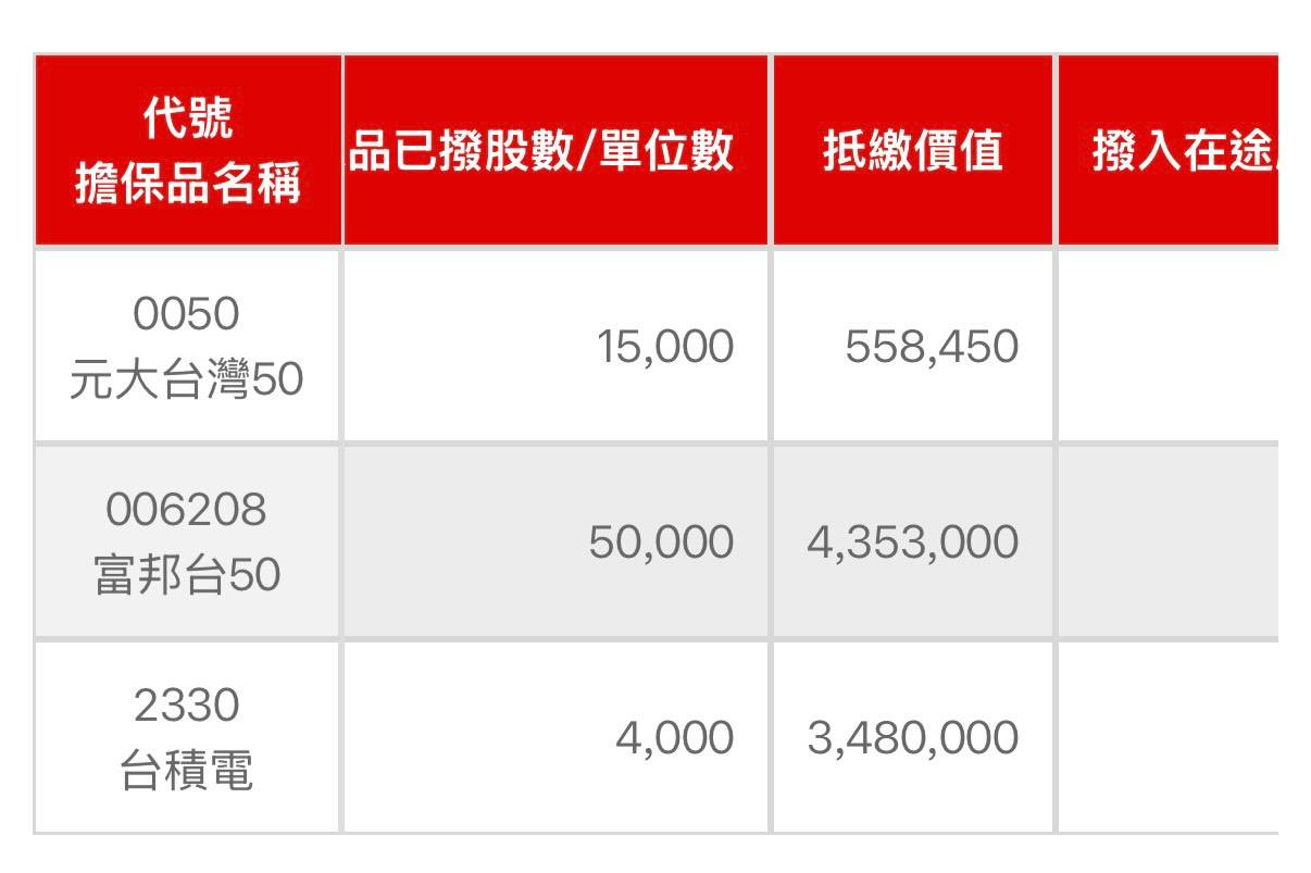 : 2.2%上下,質押利率約2.5%,維持率約280%。
