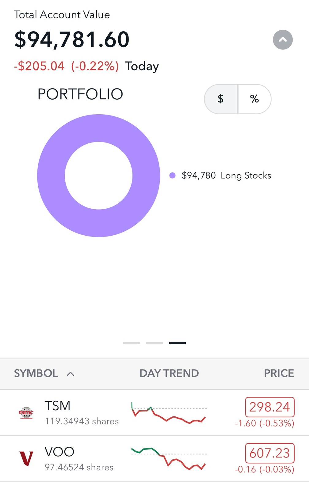 : 投資策略是開槓桿進行指數化投資(006208、0050、VOO)以及搭配唯一個股台積電,以下