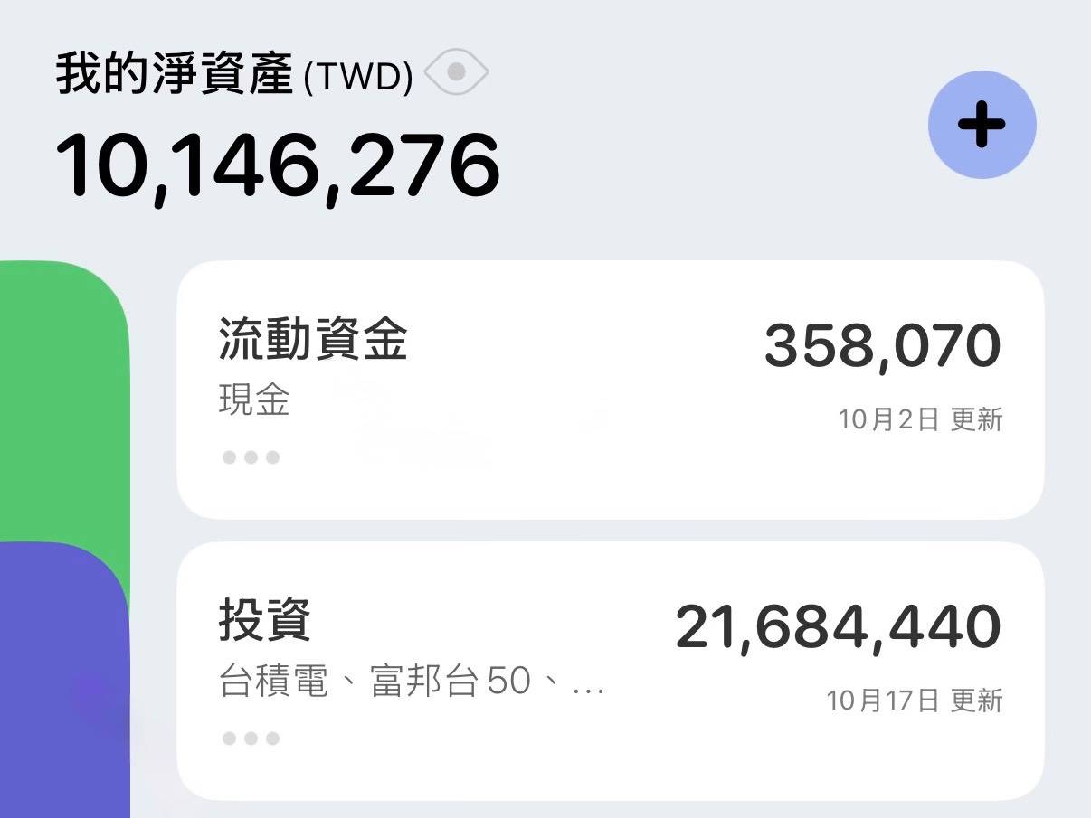 : 近期台股大漲,我也是剛好搭上順風車,淨資產首度突破1000萬元,總投資金額來到2100