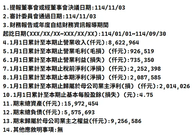 起訖日期(XXX/XX/XX~XXX/XX/XX):114/01/01~114/09/30