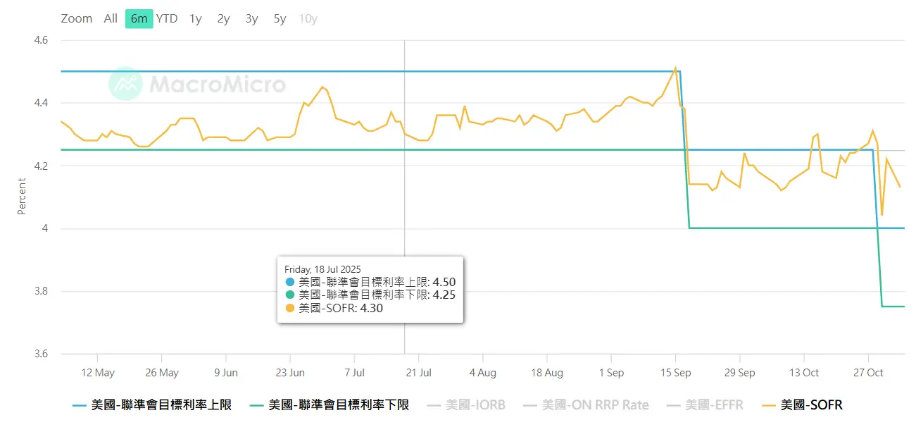 所謂的SOFR利率是金融機構間以美債為抵押做隔夜貸款的利率