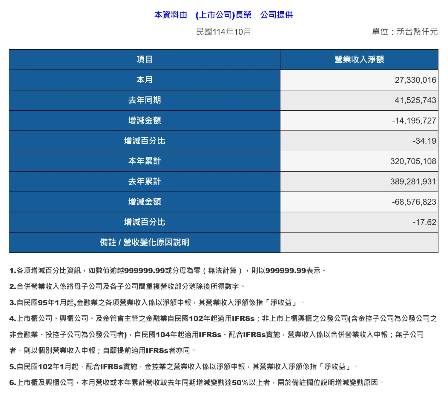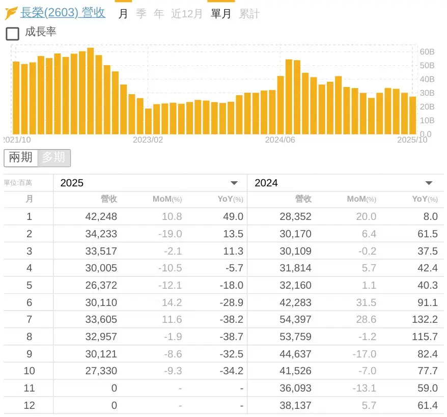 標題:2603 長榮 10月營收